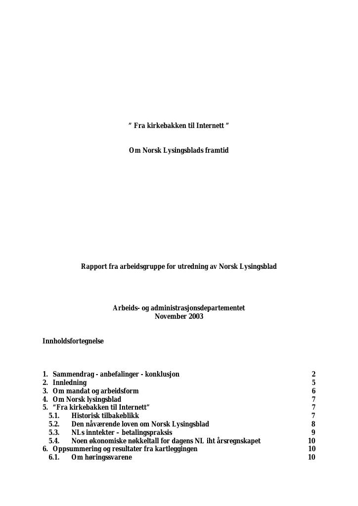 En arbeidsgruppe har kartlagt hjemmelsgrunnlaget for utlysing i Norsk Lysingsblad og vurdert Norsk Lysingsblads framtid både med hensyn til innhold og mulig framtidig organisatorisk løsning.